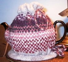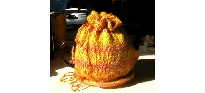 Here it is, the Super Simple Tea Cosy! I've knit a few versions; this pattern is both easy to memorize, and easy to customize. The one above was knitted in handspun longwool; the one to the side was knitted in colors. The color patterning is NOT included in the pattern, but adding it is simple. All I did was knit odd stitches in one color, even stitches in another all the way across the row. On the next row, I knitted color A stitches with color B and vice versa. Every four rows I changed one of the colors for a new one. You don't have to do color work; you can just knit solid. But I will say that carrying two colors across the row like this makes a thicker, warmer cosy. Use wool or wool blend yarn if at all possible.