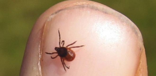 When tick season starts, always check your clothing, skin, and hair for ticks when you come indoors. Remember that immature ticks are tiny, and may be mistaken for dirt or freckles, so a thorough look is needed to spot them. And don't forget the dog, since ticks will attach to pets as well as humans. The Borrelia bacterium can make dogs ill, if the infected tick isn't removed. Undetected ticks can also be transferred from dogs to humans.