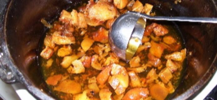 As you're doing all this there will be a distinct smell. Some people like it, some people don't. It's a little too intense for my comfort, frankly, which is why I try to do a bunch of lard at once. If you can do this outside, or in a canning kitchen if you have one, so much the better.