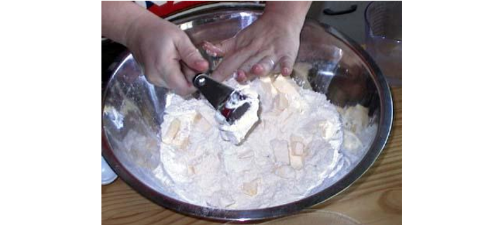 Make sure your fat is very cold, and that you cut it into manageable chunks before you tackle it with either a pastry cutter (as shown here) or with a food processor.